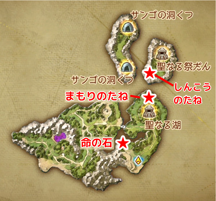 | サンゴの洞くつ(現代) | B2 | まものせいそく図 ★ | 南西・宝箱 |