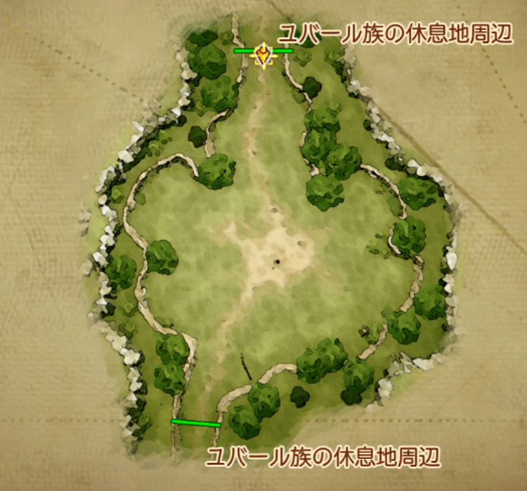 ユバール族の休息地(過去)はユバール族の休息地地方にあります。現代のなぞの遺跡からふしぎな石版(黄)で。