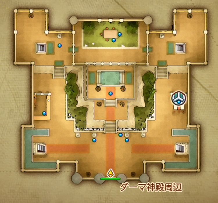 ダーマ神殿(過去)はダーマ地方にあります。現代のなぞの遺跡からふしぎな石版(青)で。